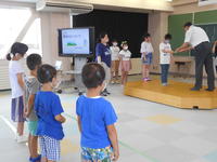 今週の児童集会では、夏休みに向けた生活について係の先生からお話がありました。