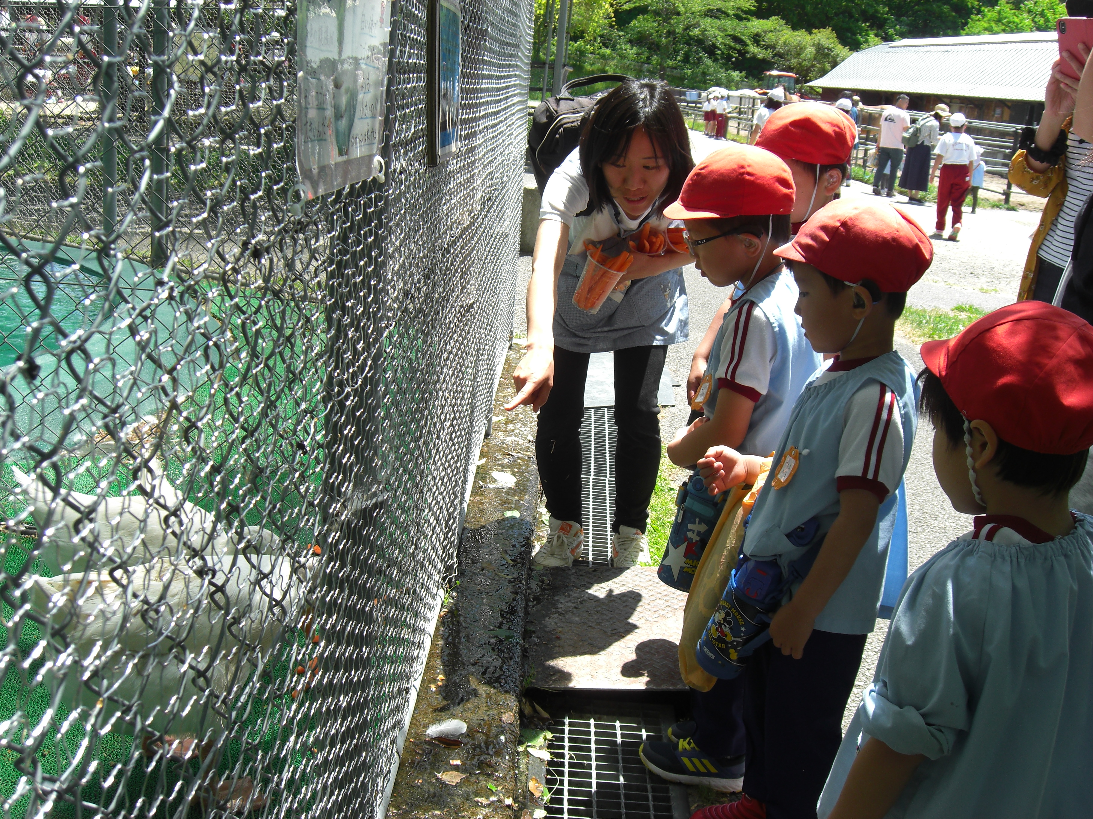 5月30日、親子遠足で石筵ふれあい牧場に行き、羊や馬、ウサギなどの動物に餌をあげたり、動物の写生をしたりしました。