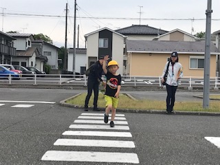 歩行と自転車での実技では、交差点の渡り方や踏切での安全確認の方法を学びました。真剣に信号機と左右の安全を確認してする姿が見られ、交通安全に対する意識を高めることができました。
